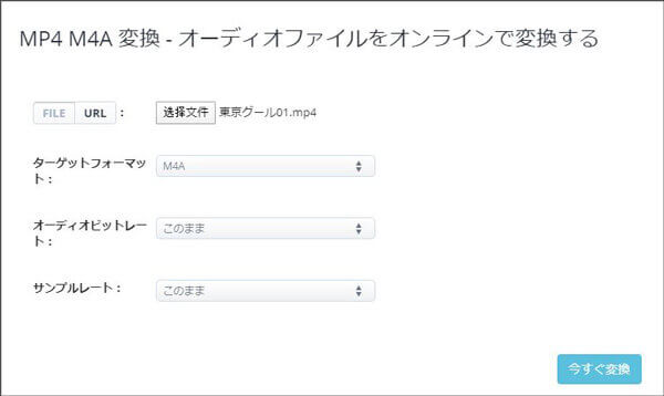 Aconvertは極めて優秀な無料のMP4 M4A 変換のオンラインサイトです。動画と音声フォーマットを変換できる以外、PDFや画像、ドキュメントなどファイルの変換もサポートしています。ただ「FILE」或いは「URL」をクリックして、ターゲットフォーマットを選択して、 [今すぐ変換]をクリックすれば、目標ファイルの変換が始まります。