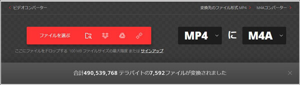 Convertioは無料でMP4ファイルをM4Aファイルに変換できるサイトです。このサイトは300以上の動画及び音声のフォーマットをサポートし、動画・音声ファイルフォーマット間で変換することができます。また、ローカルの動画ファイルをサイトにアップロードする以外、GoogleドライブとDropboxに保存された動画ファイルのアップロードするのもサポートします。