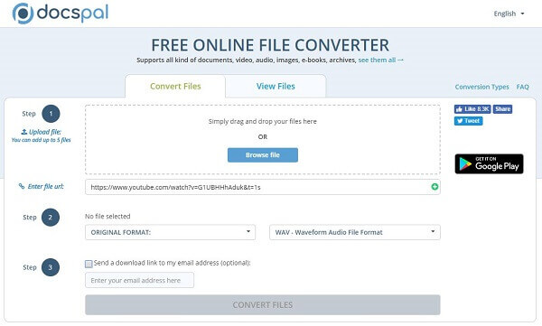 MP4をWAVに変換するには、WAV形式を選択する必要があります。変換後、変換の最後にダウンロードリンクが表示されます。メールへのリンクを受け取ることもできます。
