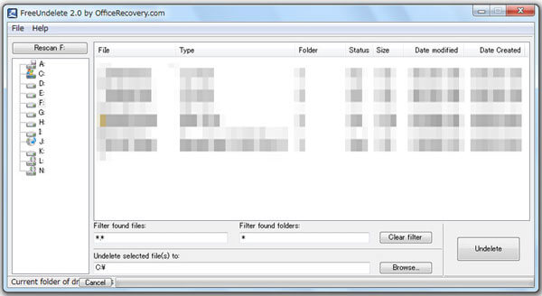 FreeUndeleteは誤ってゴミ箱から削除してしまったファイル、フォーマットしたハードディスク・SDカード・USBメモリーなどの記憶装置から消えたファイルを復元することができます。また、検出されたファイルの復元確率を表示する機能、フィルタリング機能、ファイルごとに復元する機能などをついています。