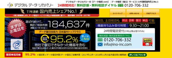 データ復旧.com【デジタルデータリカバリー】はデータが見れない、PC・HDDの故障、画面が真っ暗、電源が入らない、起動画面から進まない、操作が効かないといったPC、HDDのトラブル時からWord、Excel、PPTなどのデータを救出するデータ復旧サービスで、各種メーカー・モデルのパソコン・RAIDサーバー機器・HDD・SSD・ビデオカメラなどに対応し、診断・対応・復旧のスピードが早いです。
