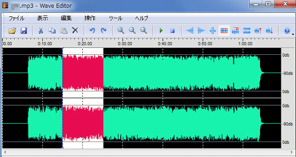 Wave EditorはWAV、WMA、MP3に対応したオーディオエディターフリーソフトです。このWAV編集フリーソフトを使うと、WAVなどの音声ファイルの内容をグラフで表した「波形」を見ながら、WAVファイルの不要な一部をカットしたり、WAVにフェードイン/アウト効果、無音を挿入したり、特定場面を繰り返したりすることができます。