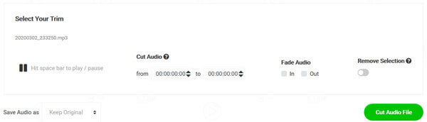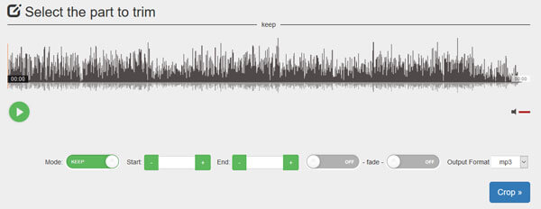 Audio Trimmerはオンライン オーディオ & Mp3 カットサイトで、MP3、WAV、WMA、OGG、M4R、3GPP、AACなどの音声フォーマットに対応できます。このMP3 カット無料サイトの使い方については、編集したいMP3を選択してアップロードしてから、開始時間と終了時間を指定し、フェードインとフェードアウトを設定し、「Crop」をクリックすることでMP3をカットできます。