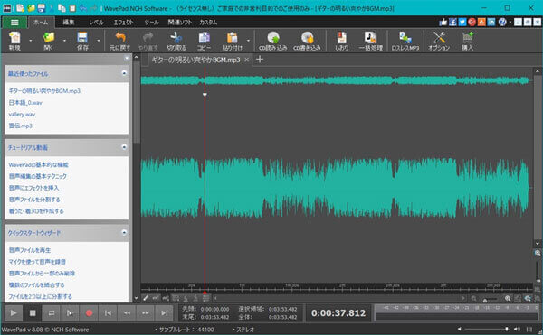 WavePadはMP3、WAV、VOX、WMA、real audio、AU、AIF、FLAC、OGGなど多様なフォーマットの音声ファイルに対応した音声・音楽編集ソフトです。