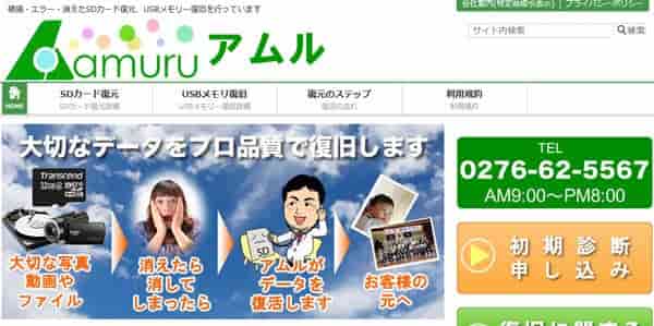 アムルはメモリーフラッシュ専門の復旧会社で、SDカードやUSBメモリーからデータの復旧することに対応できます。SDカードの場合、SDカードの写真、動画などのデータが勝手に消えた、SDカードのフォーマット、初期化、SDカードの破損、カードエラー、SDカードの認識しない・反応しないなどのトラブル種類が相談に乗れます。SDカードの発送>初期診断>電子メールで初期診断結果の案内>銀行振込・代引>復旧データをコピーした保存メディアと復旧品の発送という流れなので、平均一週間から10日で手元に戻れます。もちろん、初期診断結果が分かってから、復旧不可かキャンセルの場合に診断料金を支払う必要がありません。